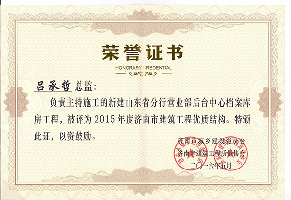 济阳农行获得---2015年建筑工程优质结构奖