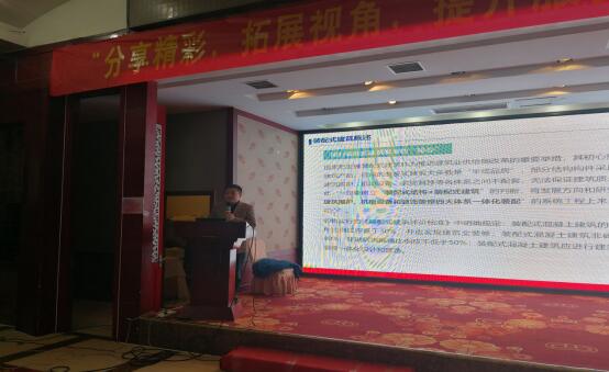 由国际学校项目总监黄超为大家讲解了《装配式混凝土结构工程》,国际学校是济南市乃至山东省装配率最高的工程项目,装配率高达75%。黄总结合对该项目一年多的现场管理经验,对装配式混凝土结构有了比较深刻的认识,也与大家分享了对装配式施工的心得体会,为公司再次承揽类似项目积累了宝贵经验。