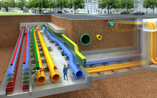 测量放线→土石方开挖→垫层施工→底板防水→底板施工→侧墙、顶板施工→防雷接地工程→防水工程→管廊内装饰工程→土石方回填