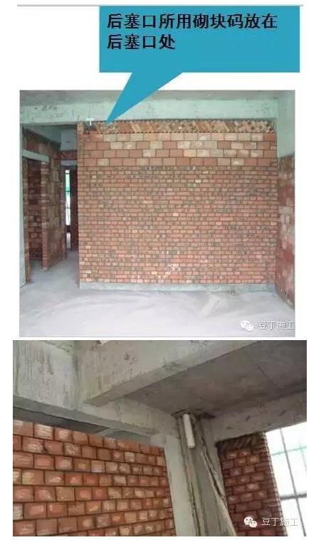 后塞口高留设准确(200mm),端部采用60度三角砖进行砌筑。